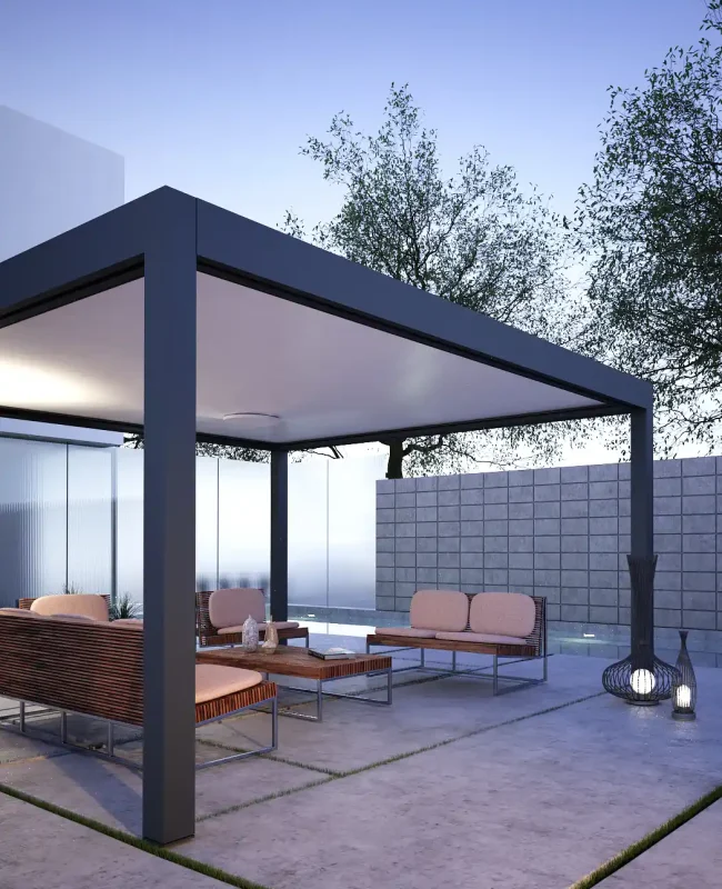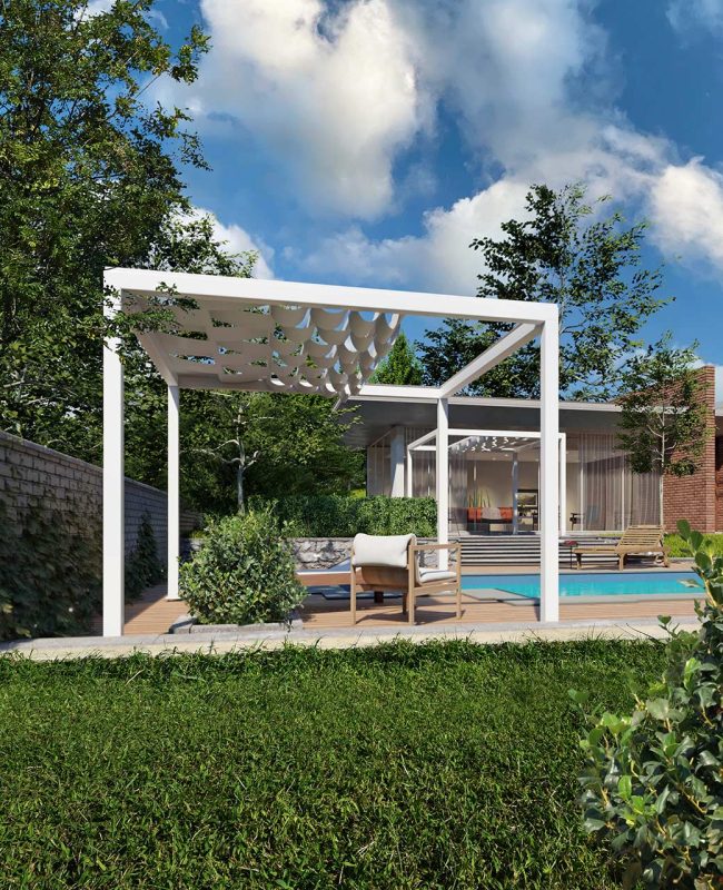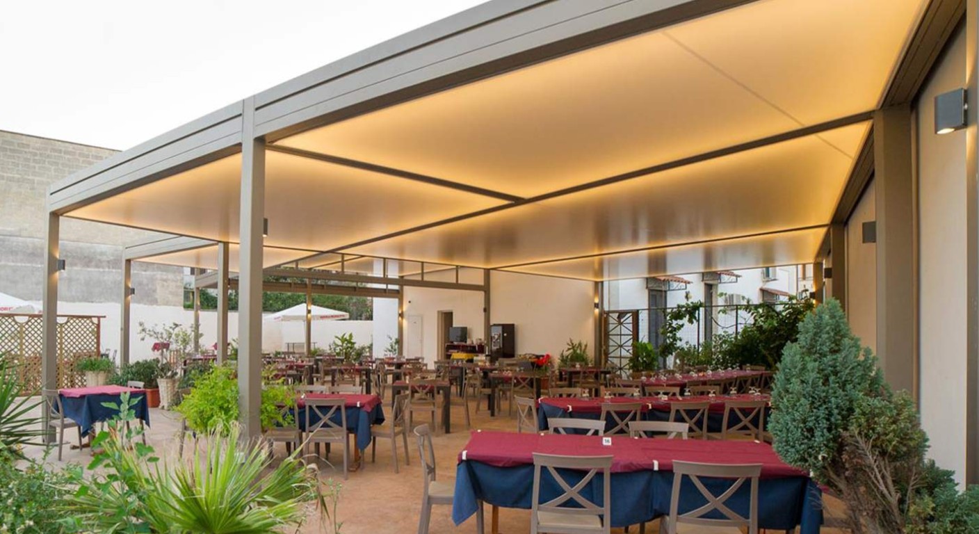Si possono installare chiusure perimetrali come tende a caduta, grigliati, teli in PVC, telai in legno o alluminio con policarbonato scorrevoli.